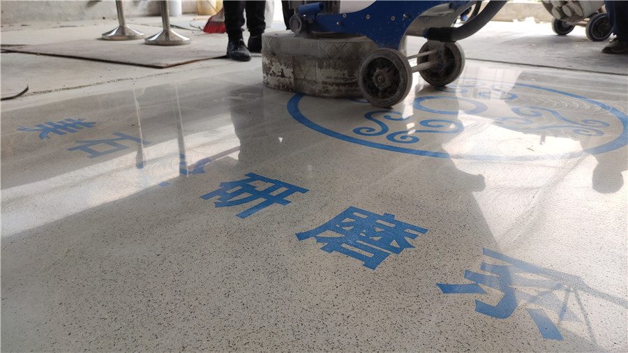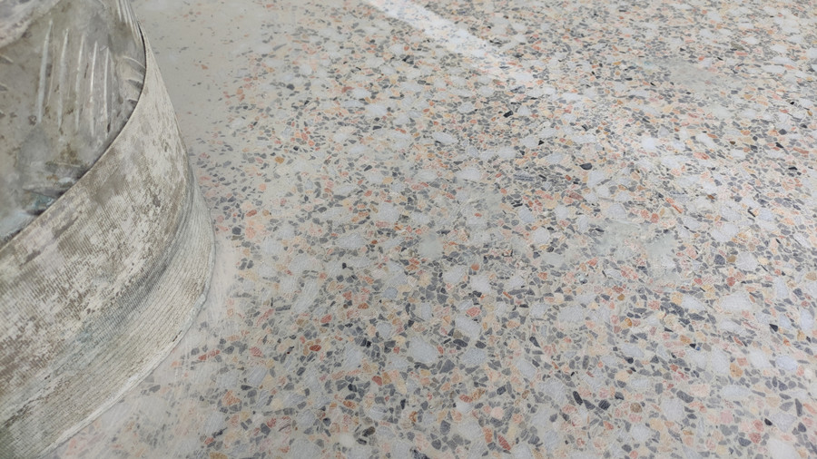 無機磨石攤鋪實操現(xiàn)場攤鋪好的無機磨石樣板